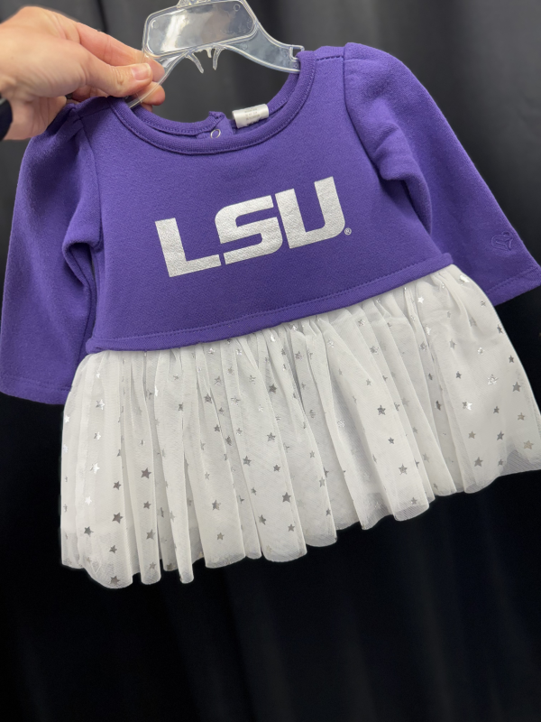 $38.00 Size Choose an option0/3 Months12/18 Month3/6 Months6/12 monthClear Quantity Add to cart Additional information Additional information Size 0/3 Months, 12/18 Month, 3/6 Months, 6/12 month Related products Purple And Gold Sunglass Hook OnLSU Tigers $12.95 Add to cart Toddler LSU Paint Splatter DressLSU Tigers, LSU Tigers Youth $30.00 – $38.00 Select options LSU Rubber Key ChainLSU Tigers $7.99 Add to cart